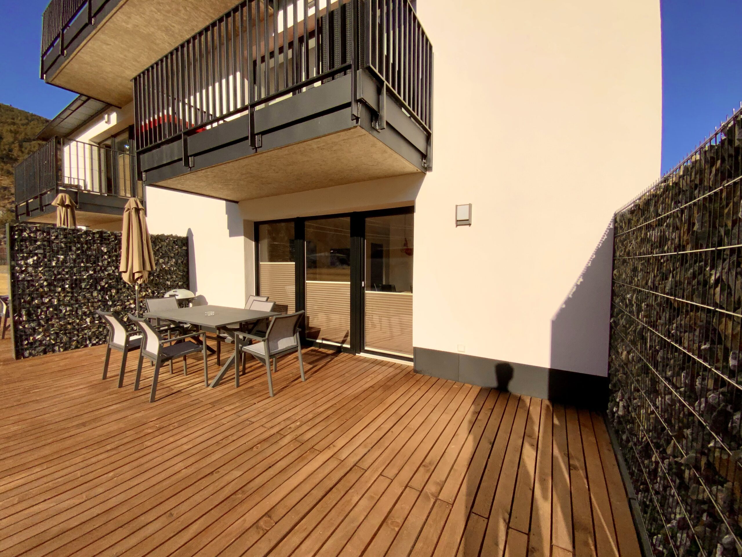 Die Terrasse lädt zum Entspannen ein. Besonders schön: der Whirlpool und die Fasssauna, die sowohl im Sommer als auch im Winter unvergessliche Momente garantieren.